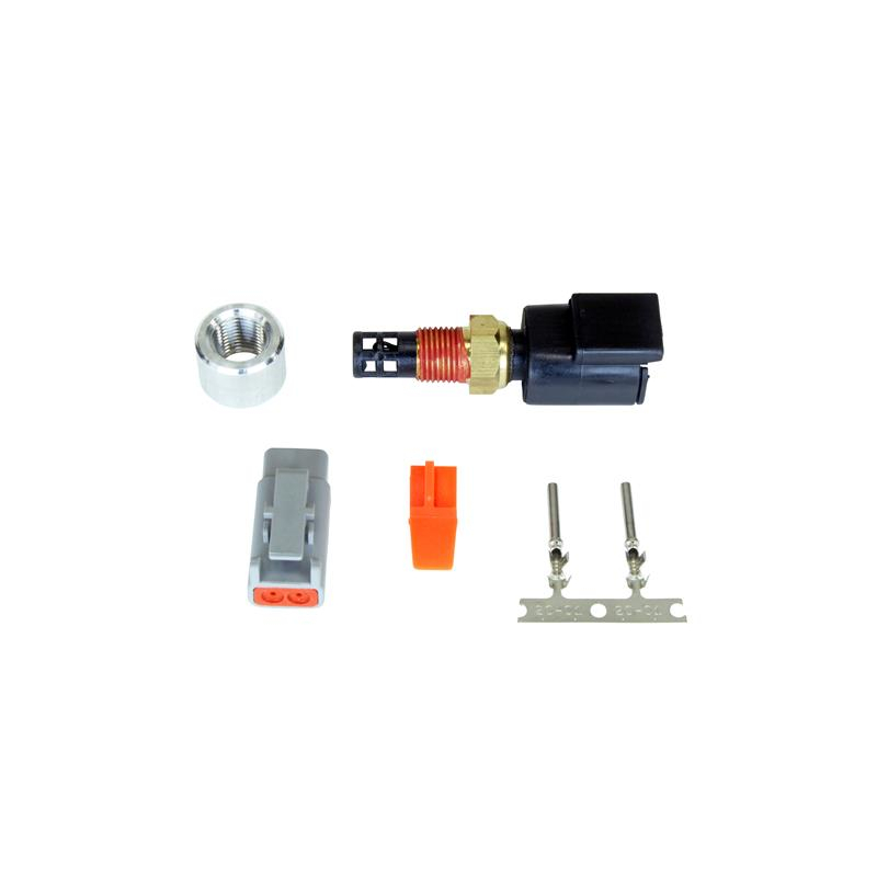 Product Description AEM Air temp sensor kit in 1/8 NPT Includes: 1x Temp Sensor 1x DTM Connector and Pins set 1x 1/8" NPT Aluminum Bung