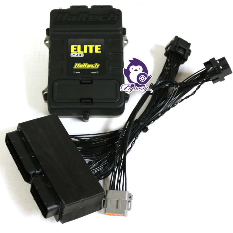 Tired of trying to push the limits on your stock Nissan or Infiniti ECU? Looking to add the flexibility that a complete standalone ECU offers? LOOK NO FURTHER. Dynosty offers the best solution for all your stock ECU woes. Featuring out proprietary plug and play harness, we can pair a complete Haltech Elite 2500 system to your factory controls. These are used in conjunction with your stock equipment to stretch the limits of your vehicle. The Haltech offers standalone control of your VQ35DE fuel and ignition as well as many other areas by replacing the factory computer. Here are a few highlights of the Plug and Play Haltech Elite kit for the DE: * Full Flex Fuel and E85 integration for fuel, ignition and boost control. No map switching required, just pump in fuel and go! * Live Speed Density tuning eliminates reflash MAF tuning * Advanced Boost Control for vehicles wishing to effectively use a lot of power. * Nitrous Control gives smooth and instant integration for wet and dry systems and eliminates having to switch maps. * On-board datalogging, never miss a thing with automatic triggered logging * Overboost Protection makes sures your engine is protected in the event a vacuum hose comes free etc. * Lean Protection constantly watches the air/fuel ratio and instantly limits the engine if things head lean for any reason such as low fuel or a clogged injector. More than capable of supporting a range of power (1000+ hp No problem!) Elite 2500 System: Haltech Elite Series ECUs take the art of engine management to a brand new level. With a waterproof case, drive-by-wire, exhaust cam and knock control the Elite Series ECUs provide cutting edge technology to tuners and performance enthusiasts world-wide. FEATURES: * Waterproof Case (IP67) * 8 x Fuel Injection Outputs * 8 x Ignition Outputs * 28 x Digital Outputs * 10 x Analogue Voltage Inputs * USB laptop communications * Drive By Wire (DBW) Throttle Control * 6 x Engine Position Inputs with extensive trigger type support * Programmable Injector Peak and Hold Currents * OBDII Capable * NSP software capable - More intuitive and easier to use than ever * Dual CAN Bus communications for OEM and Haltech CAN expansion * User definable 5D Tuning Tune by Gear, Cam Angle or any channel for ultimate tuning flexibility * Variable Cam Control Independently Control up to 4 camshafts * Dual Channel Knock Control With FFT analysis for accurate detection * Auto Tune Capabilities - Short and Long term fuel, ignition andboost learning * Staged Fuelling - Up to four stages of injectors * Multi-fuel Support- Support for Petrol (Gasoline), Methanol and Ethanol * E85 Flex Fuel Ready - With additional boost tables * Closed Loop Boost Control - Multiple Modes Tune by gear, wheel speed or time * Closed Loop Idle Control With learning for consistent idle stability * Closed Loop 02 Control Dual bank control for precise tuning * Anti-Lag and Launch Control Drag and Rally modes * Data logging Internal memory andexternal laptop logging * Multi Level Engine Protection Set limits for sensors and protect your engine * ECU comes fully enabled, no additional charges for advanced features Note: VQ35DE Manual Transmission applications only.