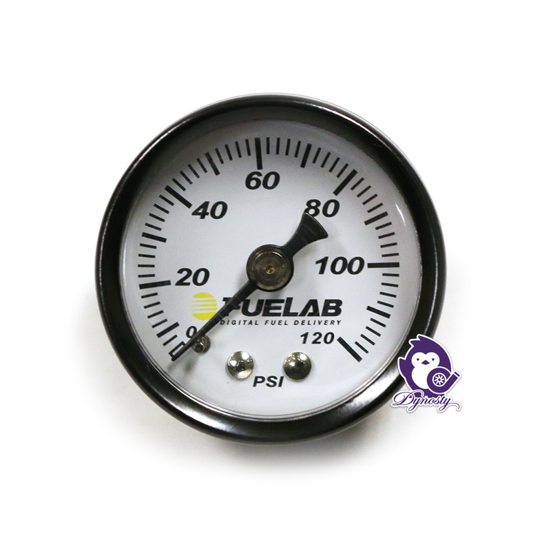 Keep an eye on your fuel pressure with the Fuelab 0-120PSI Fuel Pressure Gauge! This 1.5" diameter gauge features a black housing and white gauge face making it an attractive quick way to see what pressure is. Comes with 1/8NPT male fitting for easy install on most fuel pressure regulators. Features / Specs: 1.5" Diameter 1/8NPT male fitting for install on regulators, rails etc with gauge ports Not for use inside vehicle!