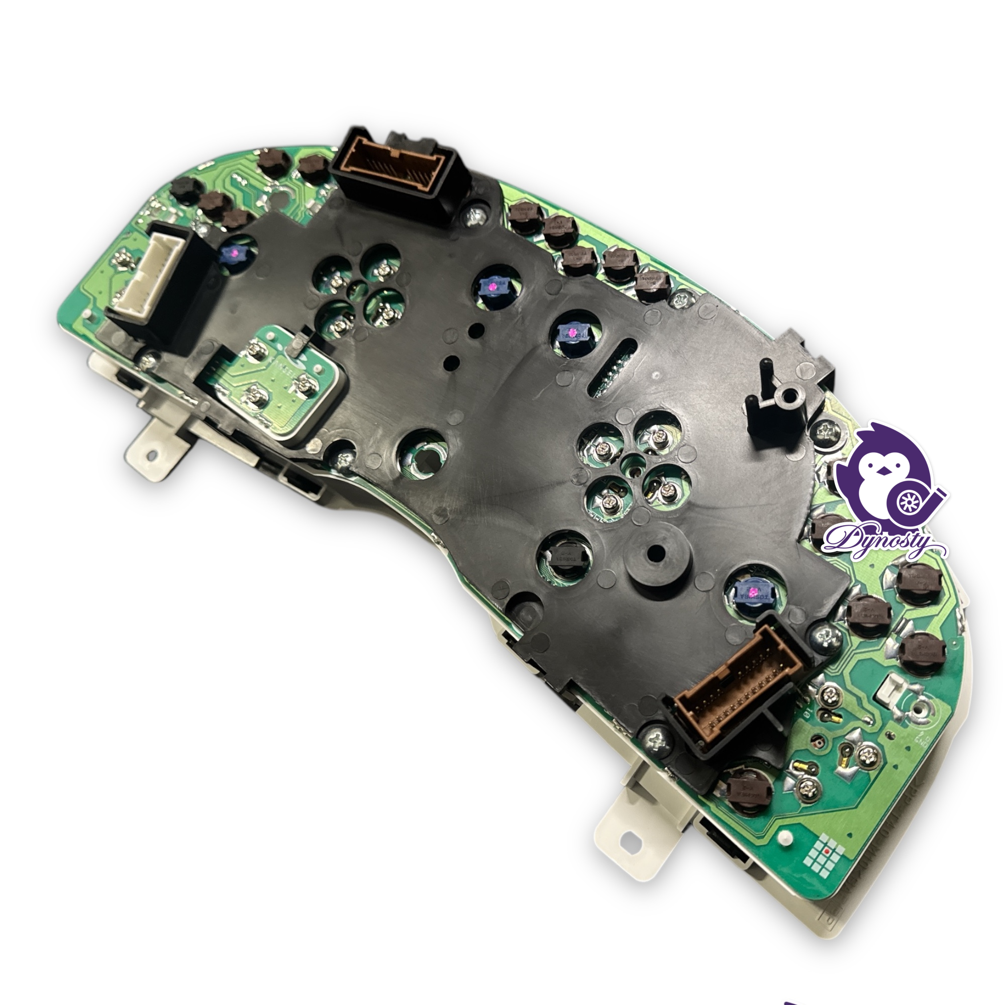 A genuine Nissan Nismo performance combination meter featuring a 300 km/h speedometer scale and a high-visibility tachometer layout designed for Skyline R34 (Manual Transmission). Engineered to Nissan OEM quality for precise instrumentation under high-performance conditions, now discontinued and rare.