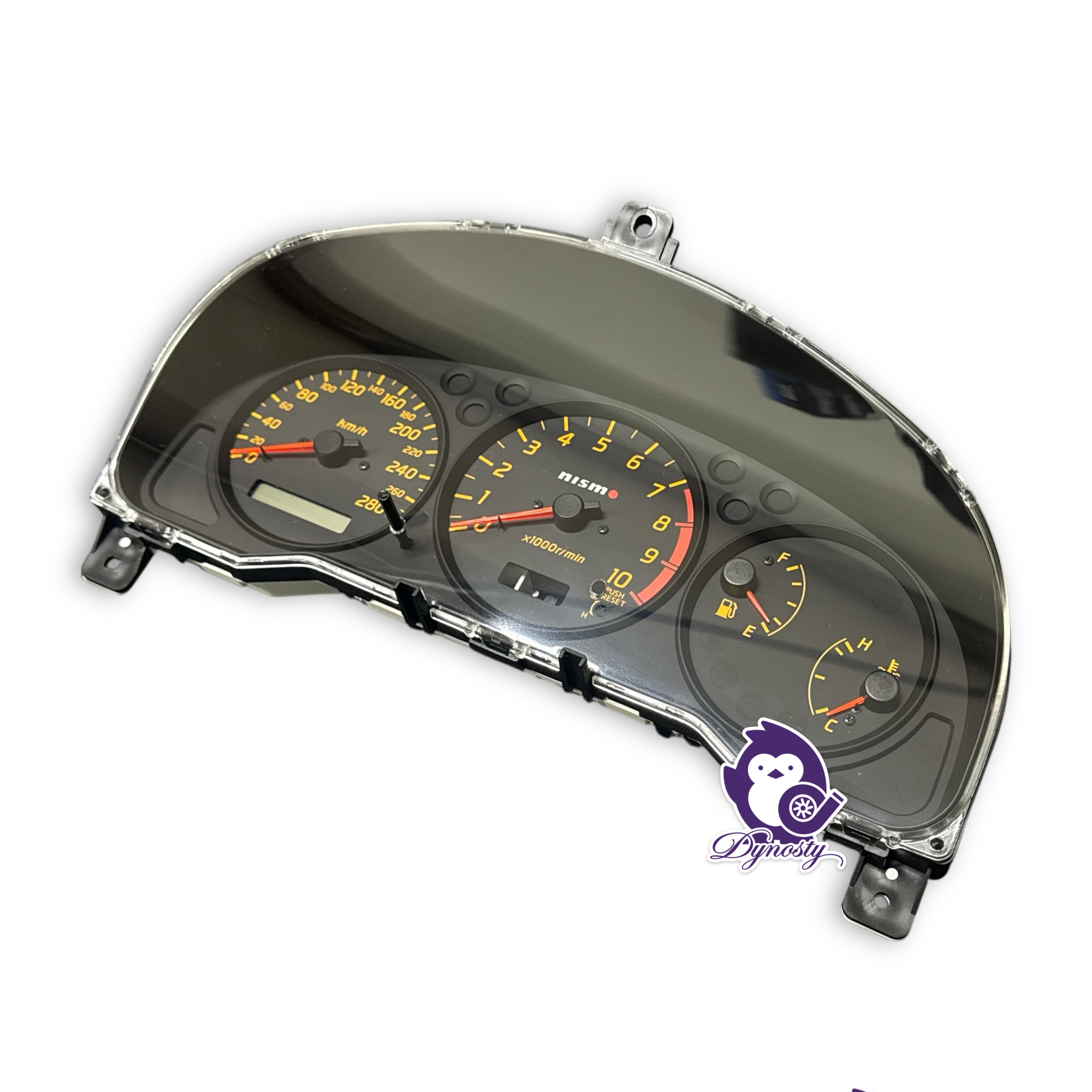 A genuine NISMO combination meter for the Nissan S15 Silvia, this OEM instrument gauge cluster features a distinctive race-inspired layout engineered for performance driving. Designed without a clock (“no-clock” variant), it delivers crisp analog readouts that place emphasis on speed and engine RPM — perfect for spirited street use or track duty. It’s a sought-after JDM part that upgrades the standard dash to a motorsport-oriented presentation while maintaining Nissan-factory quality and fitment