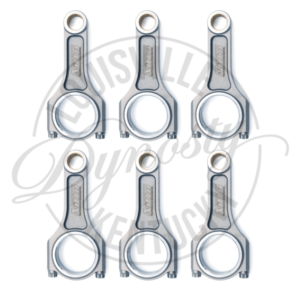 NITTO I-beam connecting rods are manufactured using the highest quality one piece 4340 forged billet steel round stock and have been designed specifically for extreme motorsport use. Its design lends itself to being slightly lighter and superior in strength than the traditional H-beam connecting rod and far exceeds any OEM produced connecting rods for strength and durability. Using NITTO?s one piece round billet design ensures a uniform flow of the material grain which ensures maximum strength especially when compared to the cheaper manufactured two piece designs commonly found at the lower end of the market. Although the manufacturing process is more time consuming and expensive, NITTO?s no compromise approach ensures you get the best connecting rod on the market. NITTO I-beam connecting rods feature quality ARP rod bolts and silicone bronze wrist pin bushes to ensure reliability and durability under the most remanding conditions. NITTO I-beam connecting rods are for use in applications that require a "NO COMPROMISE" link between the crankshaft and piston and are at home in any high RPM, extreme horsepower application. Highlights