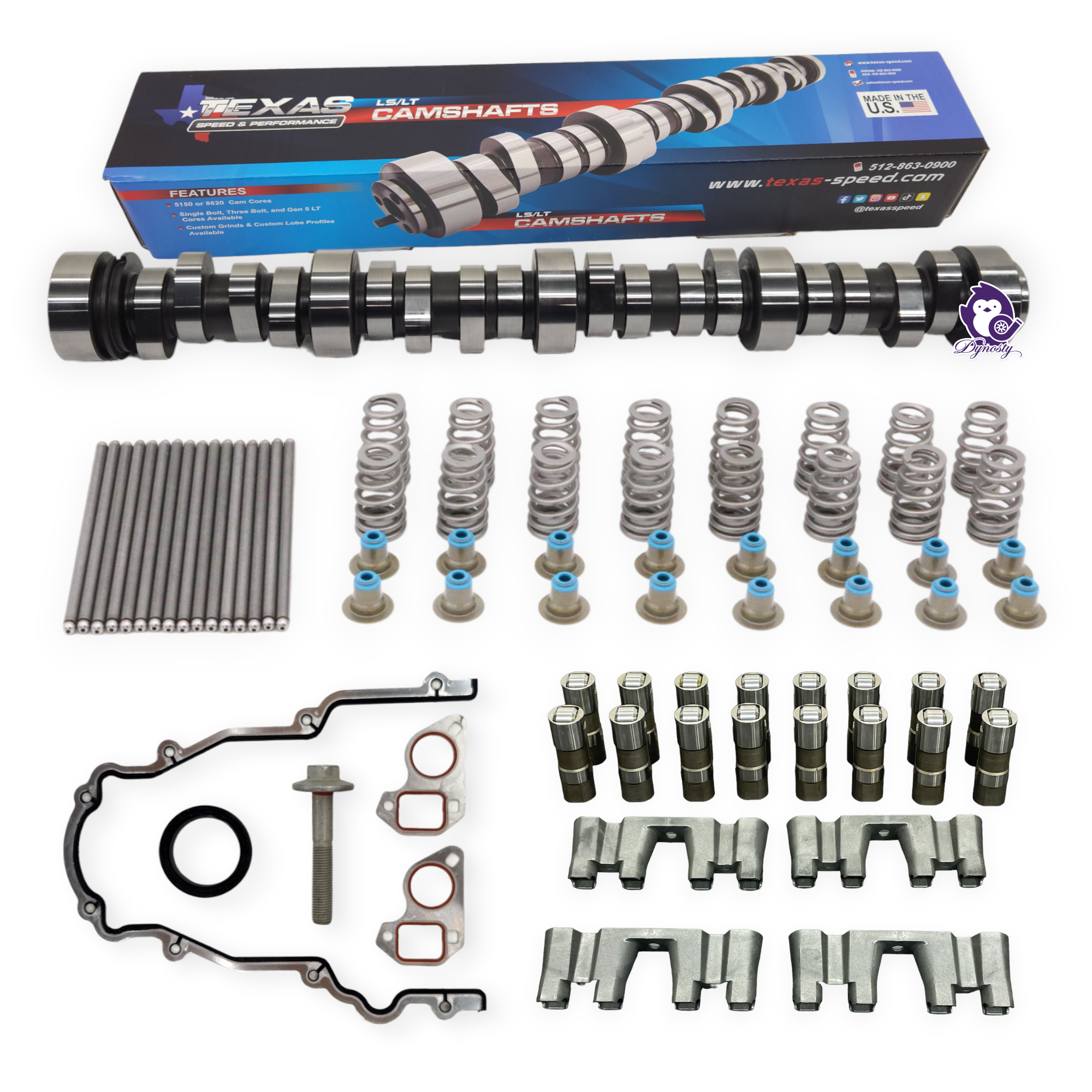 TSP Stage 2 Low Lift Truck Cam Specs: 212/218, .550/.550 112 LSA Package Includes: TSP Stage 2 Low Lift Truck Camshaft .560" Lift Beehive Valve Springs Valve Seal Set Stock Replacement 7.400" Pushrod Set OEM GM Replacement Balancer Bolt (for wet sump engines) Front Cover Gasket Front Cover Seal Water Pump Gaskets Delphi LS7 Lifters New Lifter Tray Kit This cam gained 51.4 HP and 22.9 TQ at the flywheel on a SuperFlow 902 engine dyno using an otherwise stock 5.3L engine! This cam uses proprietary TSP lobe profiles that are designed to utilize the factory GM LS6 single beehive valve springs and your factory pushrods, making them the most affordable cam package on the market! 1200-5800 RPM Power Band; This is an excellent performance camshaft with a smooth idle! We've had tons of customers select this camshaft when looking for a cam that drives almost stock and can be practically hidden with some exhaust systems! If you're looking for a small, stealth camshaft the 212/218 is a great option to consider. It is ideal for 4.8L, 5.3L, and 5.7L vehicles and works with a factory torque converter. Engines best suited for: 4.8, 5.3, 5.7, 6.0 Desired Compression ratio for cam: 9.5:1+ Recommended Springs Required: GM LS6 Single Beehive Springs Aftermarket Stall Converter Required: No, not needed Upgraded Rear Gear Required: No, not needed Operating RPM Range: 1200-5800 Power Increase: Gains of 51 Horsepower and 23 Ft. Pounds of Torque! Drivability: Will drive just like stock after proper tuning!